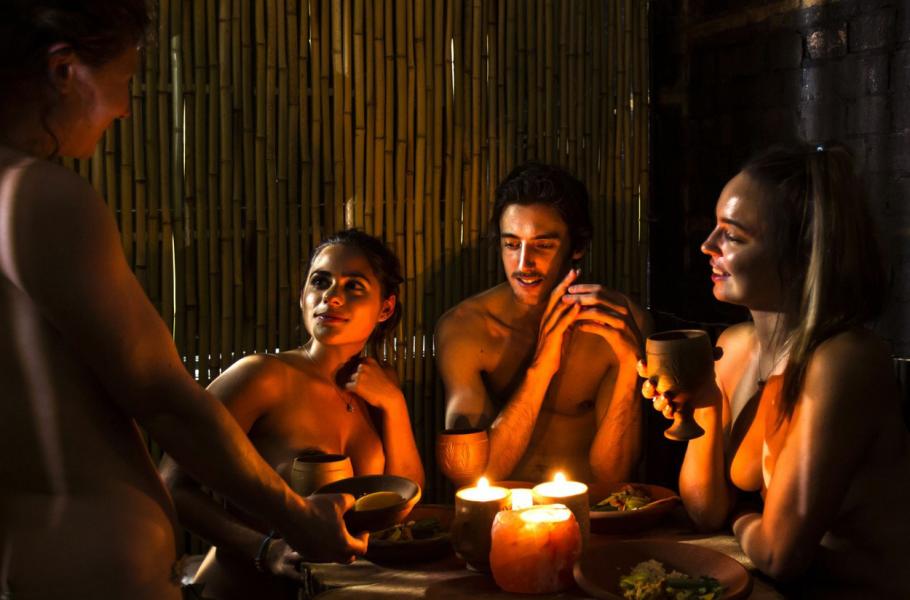 Nově otevřená restaurace Bunyadi je tak trochu sociálním experimentem – veganská restaurace (kde se ale podává i neveganské jídlo) sídlí v omšelé budově v jihovýchodní části Londýna. Jídlo je zde připravované na ohni bez použití plynu, servis je ze dřeva a svítí se zde pouze svíčkami. Hlavním tahákem je ale něco jiného - návštěvníci zde mohou (ale také nemusejí) vychutnávat kulinářské speciality v rouše Adamově.