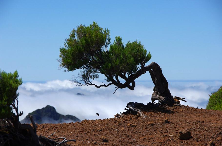 Na vrcholcích hor rostou nádherné, větrem pokroucené stromy, jejichž jedinečnost umocňuje v dáli oceán a pod vámi valící se mraky