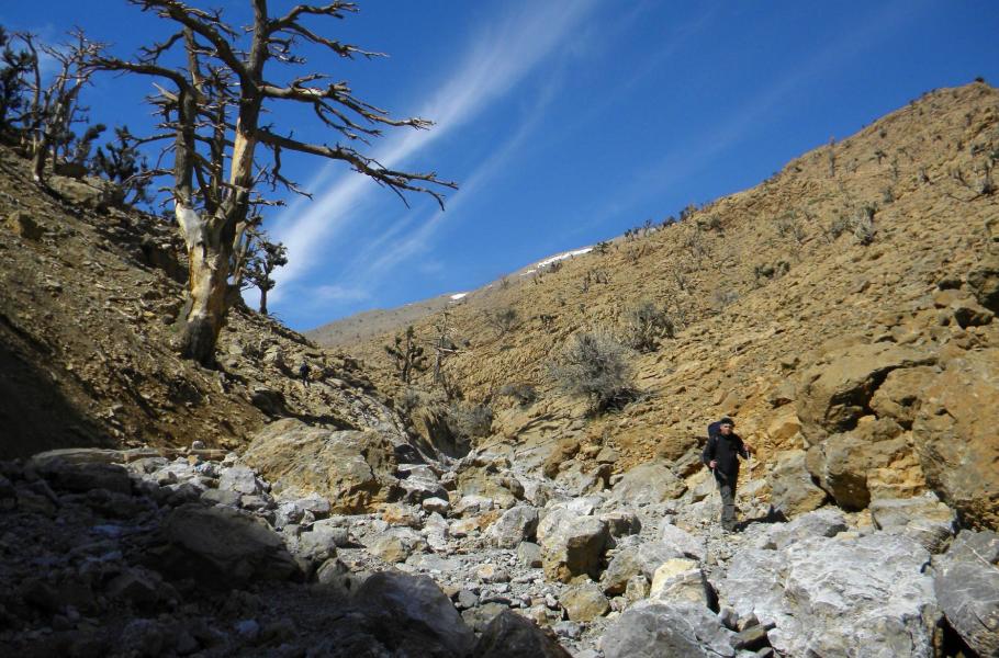 Náš první průzkum vede do nádherného sevřeného kaňonu Gorges de Jaffar. Jde o přirozenou vstupní bránu k cestě na hlavní hřeben Ayachi, neboť protíná skalnatý val severního předhůří. Jdeme kolem potoka po zprvu znatelné pěšině. V závěru soutěsky se ale skalní stěny přibližují sotva na pět metrů a my musíme brodit rychle tekoucí říčku. Tento úsek patří zároveň k vizuálně nejdramatičtějším pasážím skoro čtyřkilometrového kaňonu, na jehož konci se dostáváme do ledového dechu masívu Ayachi.