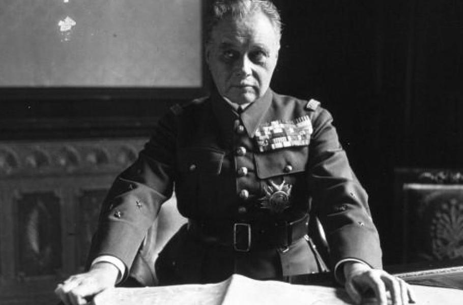 - 1918 končí první světovou válku v hodnosti brigádního generála