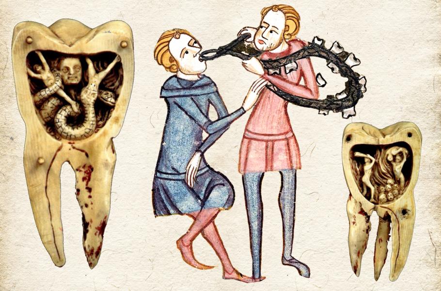 To, že bolavé zuby „léčil“ zvířatům i lidem kovář, není žádná legenda, ale holý fakt. Bolavý fakt. Skutečná profese instrumentálního dentisty totiž nebyla známá až do 18. století. Obratnost kovářů při práci s kleštěmi jste ocenili při extrakci celých kazových zubů. Pokud jste ji tedy ustáli ve zdraví a nedošlo k rozdrcení chrupu. To už jste museli jinam. Otevírání zanícených dásní k výplachům a vybírání zlomených zubů, to měli po dlouhá staletí na starost bradýři – holiči. Ti měli vždy po ruce ostrou břitvu, stejně jako nějakou tu dezinfekci. Často se tak jejich krámky hlásily do ulice veselým vývěsním štítem se zuby. Klasičtí lékaři nejevili o tuto sféru zákroků vůbec zájem, důležitý ale pro ně byl pacient před a po zákroku. Většinou totiž potřeboval něco na uklidnění.