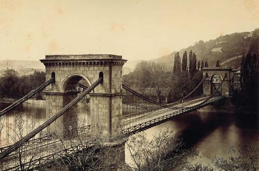 Nové dílo projektoval Bedřich Schnirch, který stavbám řetězových mostů zasvětil svůj život. Studoval je v Anglii a podle jeho návrhu se roku již 1824 přes rameno Moravy ve Strážnici překlenul vůbec první železný (řetězový) most na evropské pevnině.
