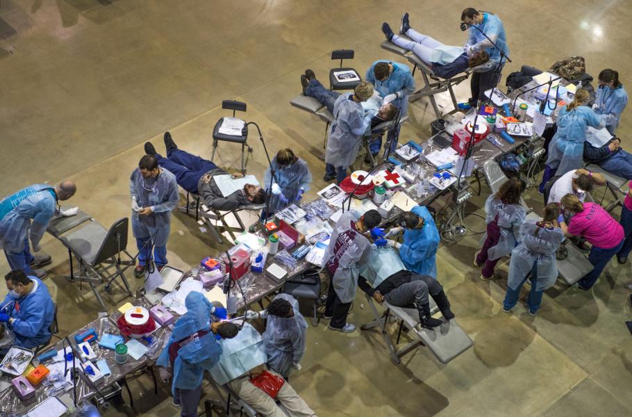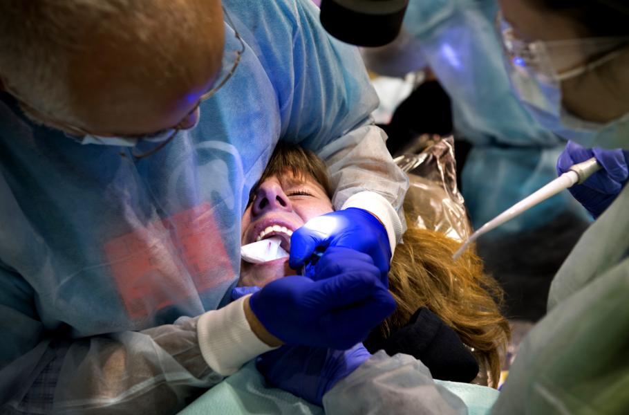 Následujícího dne v sedm hodin ráno se Dee konečně posadila do jednoho ze sklápěcích křesel a na zuby se jí podíval Robert Testani, dobrovolník z marylandského Catonsville. Poté použil novokain k umrtvení a chystal se vytrhnout stoličku. „Nebojte se, nejde o nijak závažný zákrok,“ uklidňoval ji. „Jen to prostředí je trochu netradiční,“ dodal a rozhlédl se po hale. Během dvou dnů ošetřil spolu se 115 kolegy celkem 1 165 pacientů, přičemž by uvedená péče vyšla na 22,8 milionu korun – jen za rentgen a trhání by Dee v běžné ordinaci zaplatila až 18 tisíc.