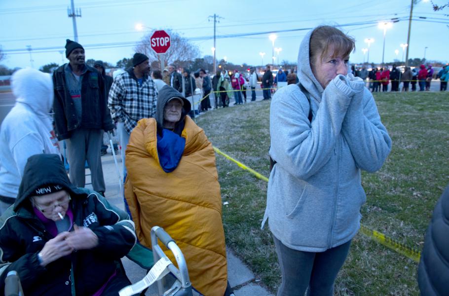 Dvě hodiny před východem slunce se Dee Matellová řadí do fronty před Wicomico Youth & Civic Center, multifunkční halou v Salisbury, kde se už tlačí stovky dalších. Uvnitř jsou vyrovnány dvě řady sklápěcích zubařských křesel. V následujících dnech se má v aréně konat představení Disney on Ice. Dnes ráno tam však přijedou dobrovolní zubaři z pěti okolních států, aby zhruba první tisícovce čekajících lidí opravili chrup.