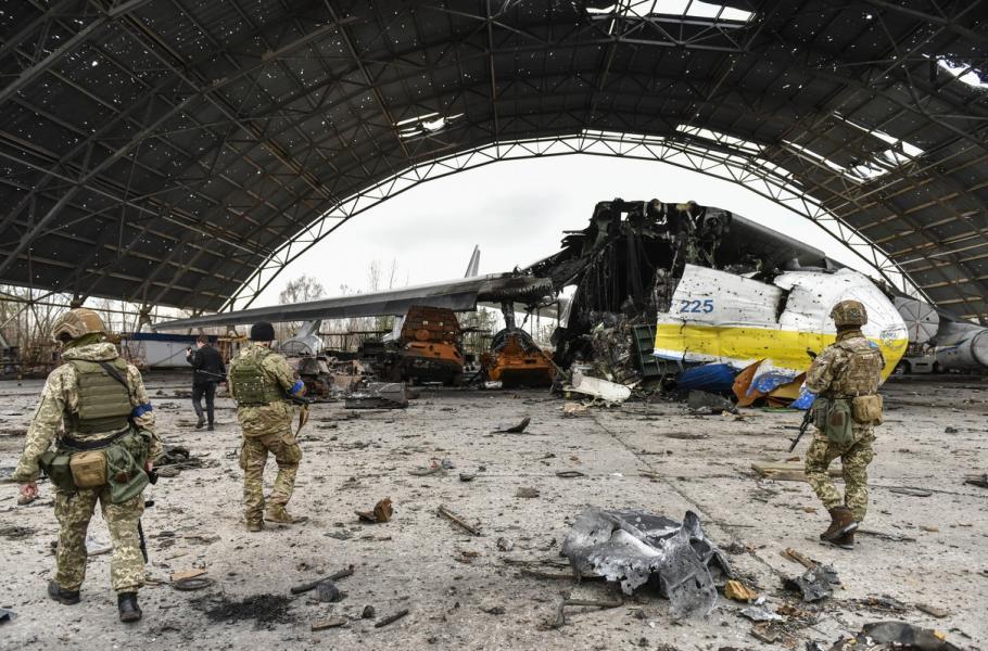 Zničený Antonov An-225 po ruském útoku. (foto: Profimedia)