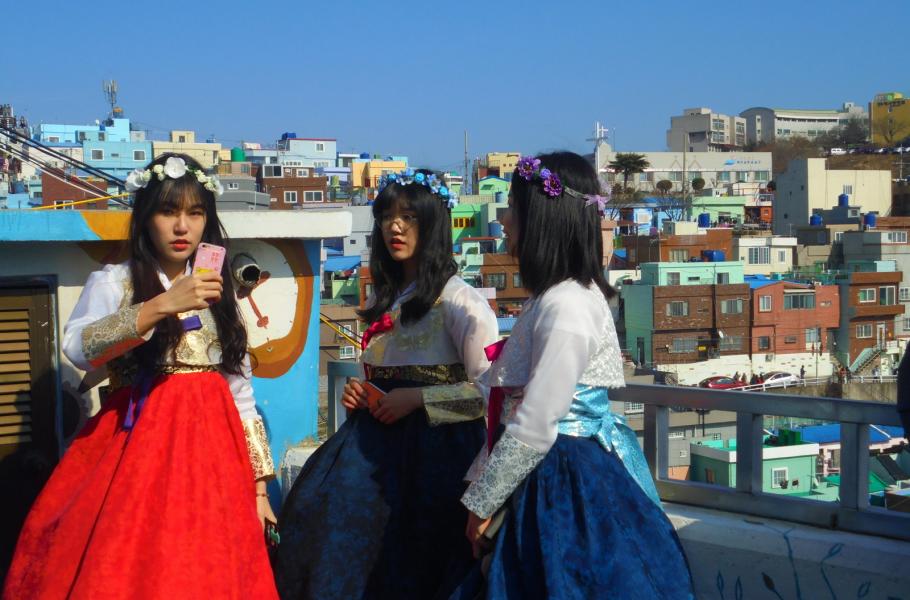Gamcheon je spletí veselých uliček, které se táhnou od přístavu až pod vrchol blízkého kopce. Korejci tento labyrint milují kvůli jeho fotogeničnosti a snímky s barevnými fasádami si na sociální sítě rády vystavují i místní babičky zběhlé v moderních technologiích. Kvůli záběru některých tamních zákoutí se dokonce stojí víc než čtvrthodinové fronty. Kulisy jednoho z nejoblíbenějších míst ke zvěčnění tvoří sochy Malého prince a lišky, jež shlížejí na pestré panoráma čtvrti. Každý Asiat chce na snímku sedět vedle hrdinů z knihy Antoina de Saint-Exupéryho, proto je těžké místo zachytit bez lidí.