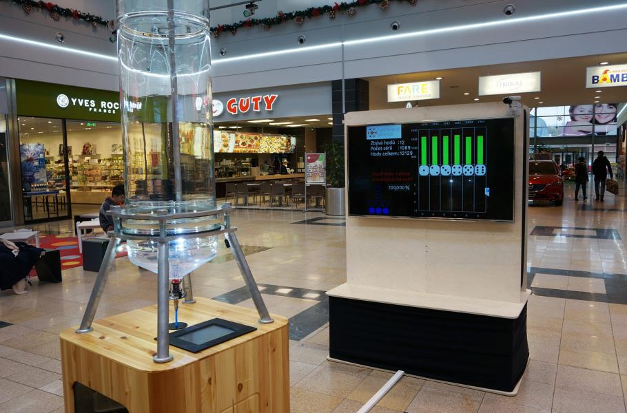 Designér Petr Bakoš zkonstruoval kvůli zmíněnému experimentu pozoruhodný stroj – vrhač kostek vysoký téměř tři metry. Kostku uvnitř přitom vyvážili a zkontrolovali odborníci z Las Vegas. Princip zařízení vysvětluje tvůrce elektronického vybavení Petr Kospach: „Stroj musí především umět vrhat kostku. Obsahuje kompresor, zásobník stlačeného vzduchu a elektromagnetický ventil. Jakmile počítač řekne, že má přístroj kostku vrhnout, pustí se stlačený vzduch do trysky, kostka vzlétne a dopadne na jednu ze stran.“
