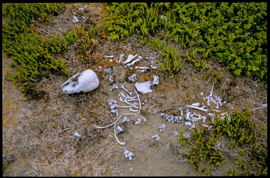 Ani blízké okolí Cape Cross ovšem nedělá názvu Pobřeží koster žádnou ostudu. Kam oko dohlédne, všude se na písčitém břehu povalují vybělené lachtaní kosti a zbytky ploutví. Mrazivý je především pohled na lebky s vyceněnými ostrými zuby, páteřní obratle a cáry vysušené kůže porostlé slepenými chlupy. Při trošce štěstí lze nalézt i žebra mořských kytovců, někde dokonce kosti z celé velryby.