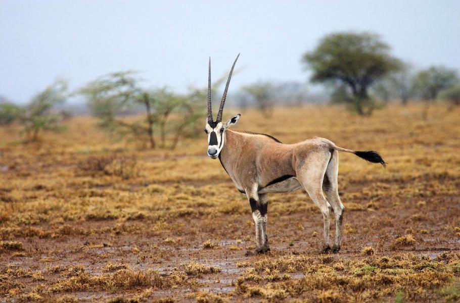 Asi deset metrů před námi vyskakuje přímorožec oryx (Oryx beisa), který si nás chvíli nehnutě měří. Krátce jsme zahlédli také psa ušatého (Otocyon megalotis), několik málo gazel na útěku a prase savanové (Phacochoerus africanus) s mladými. Vidíme i dost opic. Ze stromů prosvítají černobíle zbarvené guerézy a neuvěřitelně drzí paviáni jsou schopní ukrást vám během okamžiku svačinu i s igelitovou taškou. Tyto nečetné zbytky savčích populací se potulují mezi otrněnými akáciemi s typicky střechovitými korunami a utvářejí tak klasický obrázek rovníkové Afriky.