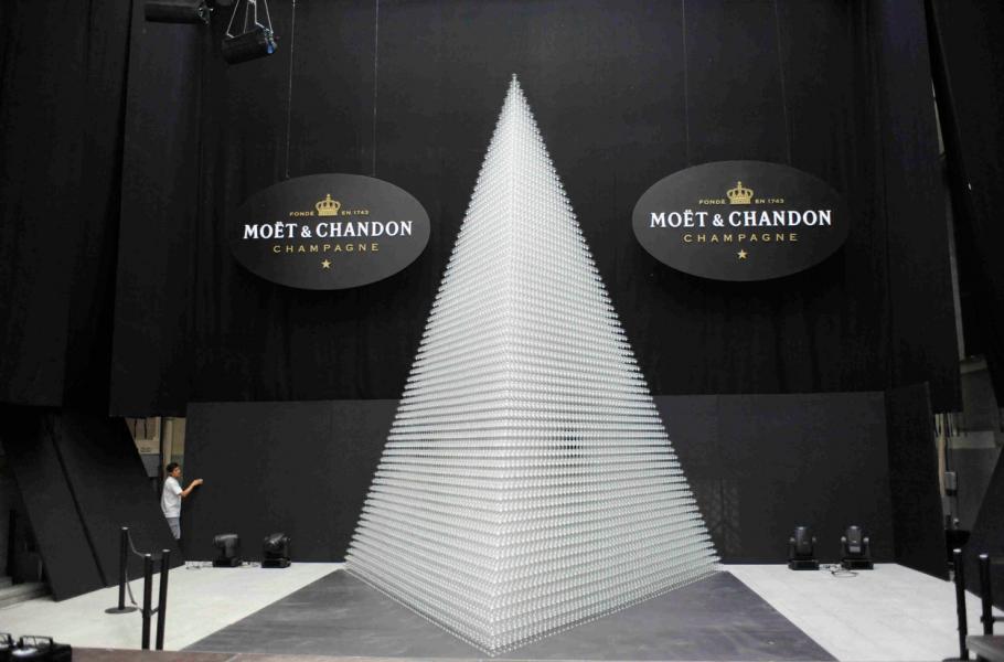 Netradiční dárek k narozeninám si nadělil francouzský producent šampaňských vín Moët & Chandon. U příležitosti 275 let od založení vinařství si na narozeninové párty v Madridu postavili největší pyramidu ze skleniček na světě. Na stavbu 7 metrů vysoké skleněné pyramidy spotřebovali 50 116 skleniček. Úctyhodný počin pochopitelně neuniknul ani správcům Guinessovy knihy rekordů.