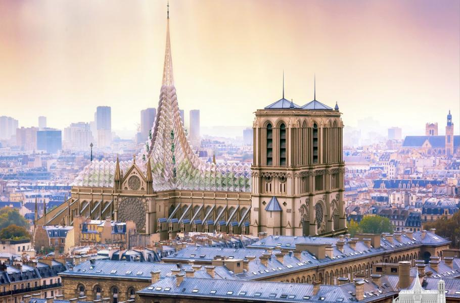 Mezinárodní zájem architektů vyvolalo oznámení tehdejšího premiéra Édouarda Philippa, že nová podoba svatostánku vzejde z celosvětové soutěže. Zpočátku byla totiž ve hře varianta, že Notre-Dame jednadvacátého století bude odpovídat moderním architektonickým trendům. Na pařížské radnici se tak scházely vizualizace, které u členů hodnotící komise – a potažmo i veřejnosti – okamžitě vzbudily pozdvižení.
