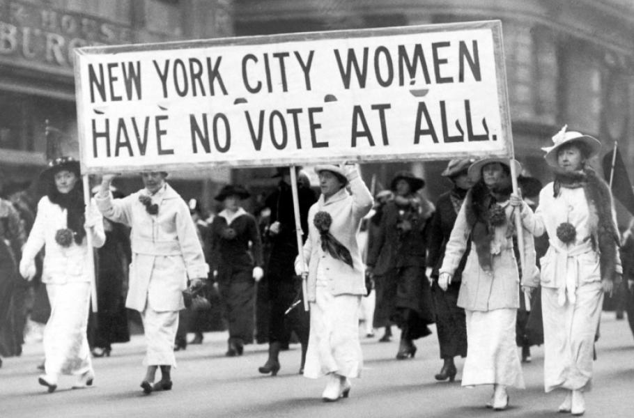 Pochod žen v roce 1915 v New Yorku. K volbám zde mohly dámy poprvé v listopadu 1918. (foto: Library of Congress, PDM 1.0)