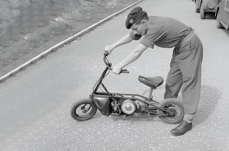Za druhé světové války vyvinuli ve Velké Británii skládací třicetikilovou motorku, která byla určena výsadkářům, aby se mohli po seskoku rychle dopravit z ohroženého sektoru