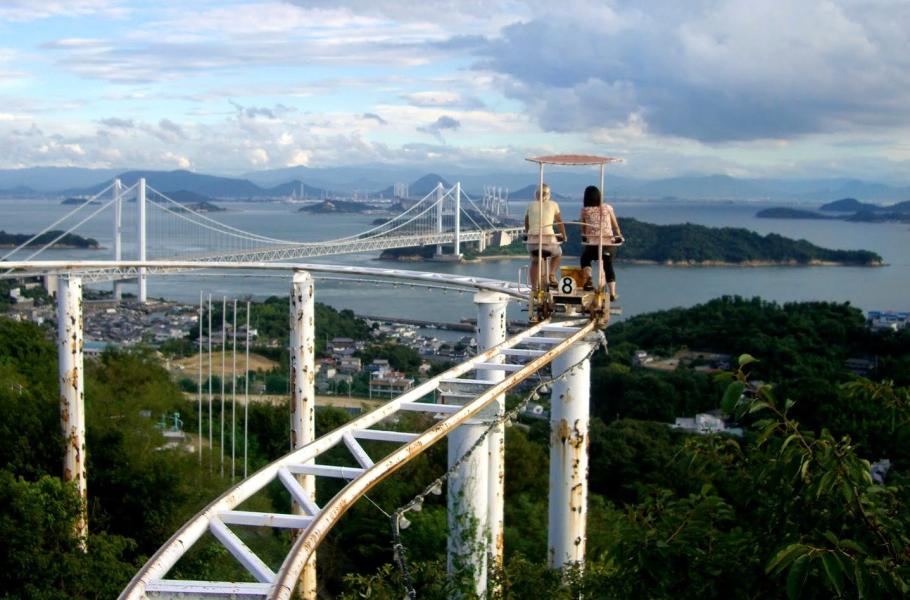 Horská dráha SkyCycle se nachází na kopci pokrytém zelení v zábavním parku Washuzan Highland. Pohon obstarávají sami jezdci – šlapáním do pedálů. Jízda na nikterak přehnaně stabilním vozíku ve výšce okolo 15 metrů nad zemí dokáže ale zrychlit tep nejednomu z návštěvníků, zvlášť když trochu zafouká. Kromě toho nabízí i ohromující výhled na okolní krajinu – japonské Vnitřní moře a nad ním se vinoucí Velký most.