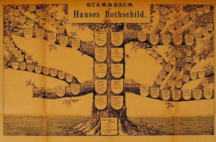 „Některé dynastie zůstávají. Rothschildové překračují všechny hranice.“ Tak se někteří vyjadřují o rodině, jejíž jméno v překladu z němčiny znamená červený štít, což odkazuje ke štítu, který visel před domem Mosese Amschela Bauera ve frankfurtském židovském ghettu. Po jeho smrti si první významný člen rodiny, jejíž jméno se stalo synonymem finančního impéria, změnil příjmení na Rothschild.