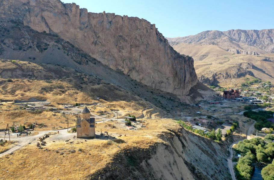 Kostel Panny Marie v Areni, v jehož okolí se nachází jeskyně, kde hledá česko--arménský tým sídliště nejstarších doložených vinařů. (foto: Jan Šindelář, CC BY-SA 4.0)
