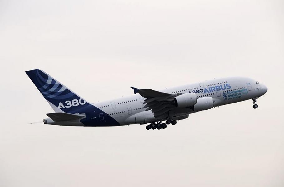 S tímto palivem letoun absolvoval dva testovací lety. První z nich se uskutečnil 28. března 2022, kdy A380 odstartoval z letiště Blagnac v Toulouse a po třech hodinách na něm zase přistál. Následující den A380 přeletěla na letiště v Nice. Společnost Airbus hodlá do konce desetiletí získat certifikáty pro lety se stoprocentním palivem SAF.