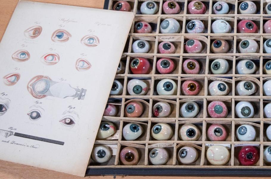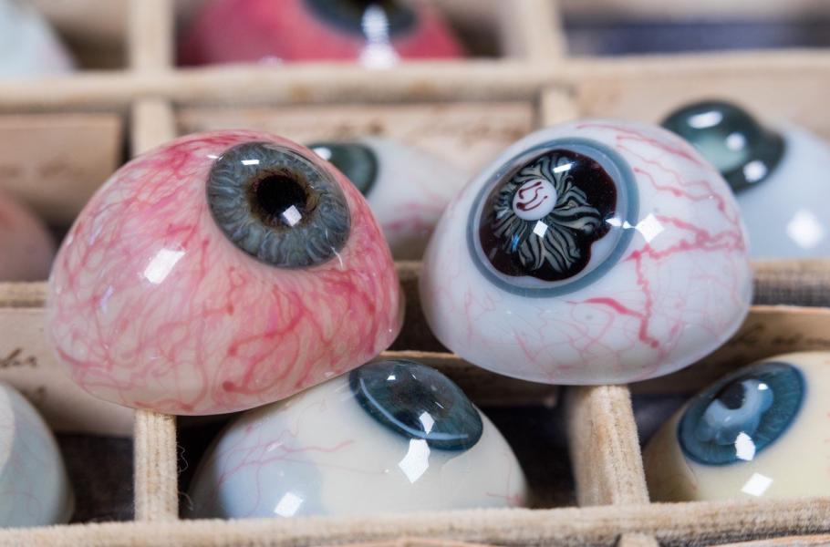 Na první pohled možná lehce morbidní sbírkou se může pochlubit oddělení patologie v německém Rostocku. Zdejší depozitář čítá 132 různých očních náhrad vyrobených z foukaného skla mezi léty 1860 až 1880. V Německu, podobně jako například v Itálii a zemích východní Evropy, se protézy vyrábějí převážně ze skla. Teprve v posledních letech je doplňují náhrady z umělé pryskyřice, které se začaly praktikovat ve Spojených státech v 50. letech minulého století.