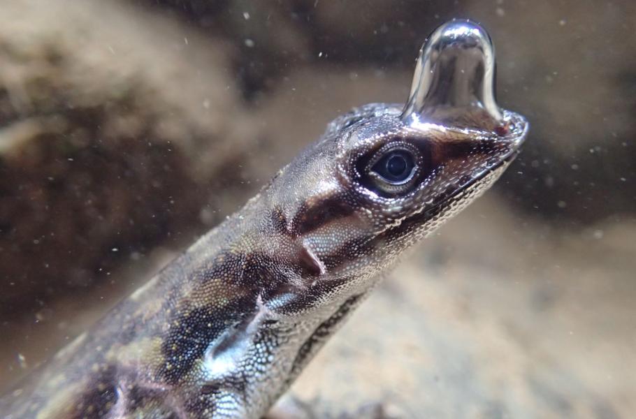Bioložka Lindsey Swierková, která působí na State University of New York, si anolise Anolis aquaticus, který v češtině nemá pojmenování, poprvé všimla v horských bystřinách Kostariky. Ještěr při vyrušení zmizel ve vodě a zůstal ponořený neobvykle dlouho. Taková strategie je při úniku před predátory pochopitelná a účinná, ale vědkyni vrtalo hlavou, jak dokáže anolis vydržet pod hladinou déle než čtvrt hodiny.