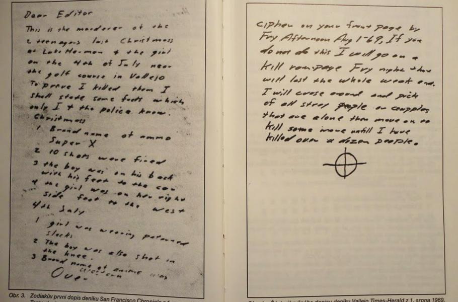 Zodiac se poprvé veřejnosti představil čtyři týdny poté, co na Den nezávislosti v roce 1969 postřílel v zaparkovaném autě milenecký pár. Do redakcí tří sanfranciských deníků dorazilo první psaní s výhrůžkou: „Pokud nenajdu svůj text v novinách, přes víkend popravím dvanáct lidí.“ Novináři poslechli, řádění bezcitného vraha ale nezastavili.