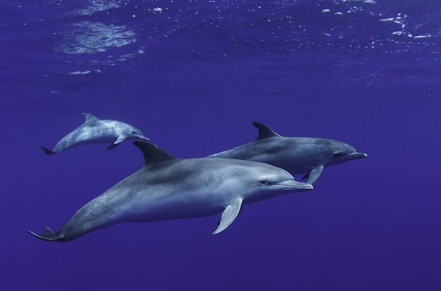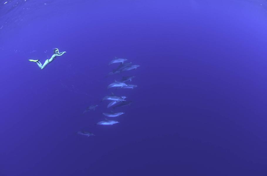 Delfíni kapverdští jsou přímo předurčeni k tomu, aby se stali miláčky lidí. Jsou to roztomilí a nadaní plavci, kteří vás svými vysokými akrobatickými skoky snadno okouzlí. Mají rádi lodě a často celé minuty tancují před jejich přídí. Pod vodou vás pak zaujmou zvědavostí, rychlostí a hlasitou komunikací, která jen dokazuje jejich silnou sociální potřebu. I když se mi při potápění vzdálili na několik set metrů, stále jsem mohl pod hladinou slyšet, jak si mezi sebou vyměňují informace hlasitým pískáním, cvakáním, vrzáním a všemi těmi zvuky, které delfíni umí vydávat.