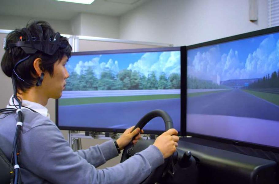 Společnost Nissan nedávno představila veřejnosti svou novou technologii mozek-auto (B2V, podle anglického brain-to-vehicle). Toto zařízení dovede odhadnout, co udělá řidič, a na základě tohoto odhadu vylepšit ovládání automobilu. Klíčovým prvkem zařízení je headset s elektrodami, které fungují jako EEG a měří mozkovou aktivitu.