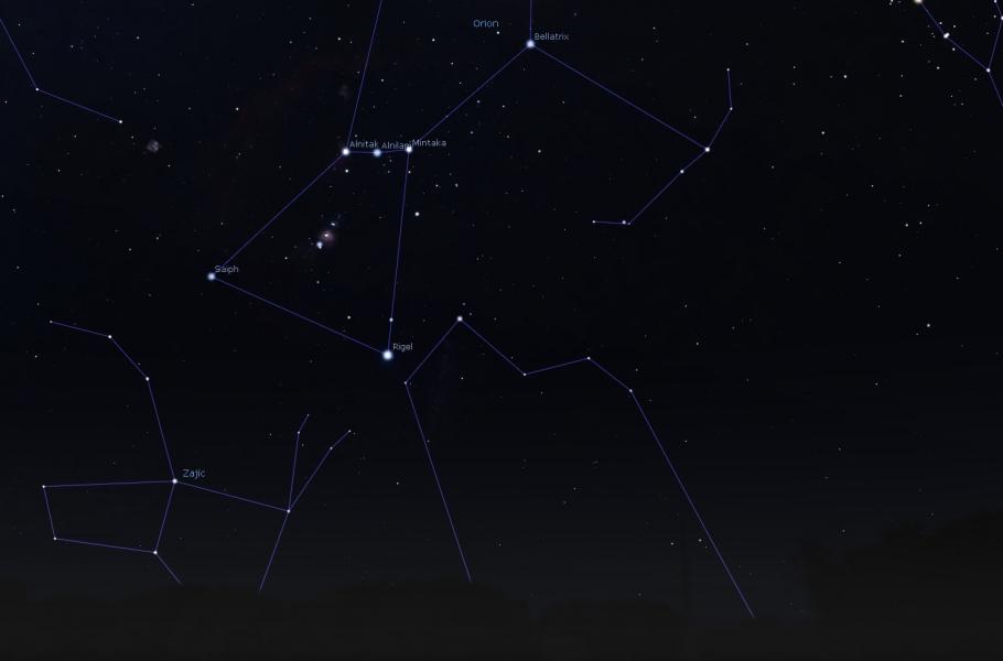 Začít můžete u již zmíněného Rigelu, nejjasnější stálice Oriona a celkově sedmé nejjasnější hvězdy na noční obloze, s 0,1 mag. Vyhledáte ji tedy snadno, ovšem její souputník má pouze 6,8 mag a od Rigelu ho dělí úhlová vzdálenost 9,5″. Drobná hvězdička se tudíž ztrácí v záři svého protějšku, a chcete-li ji zahlédnout, budete potřebovat přístroj s průměrem objektivu alespoň 10 cm a zhruba se stonásobným zvětšením. Dodejme, že Rigelův nenápadný průvodce představuje ve skutečnosti přinejmenším trojhvězdu, jak naznačují optická i spektroskopická pozorování.