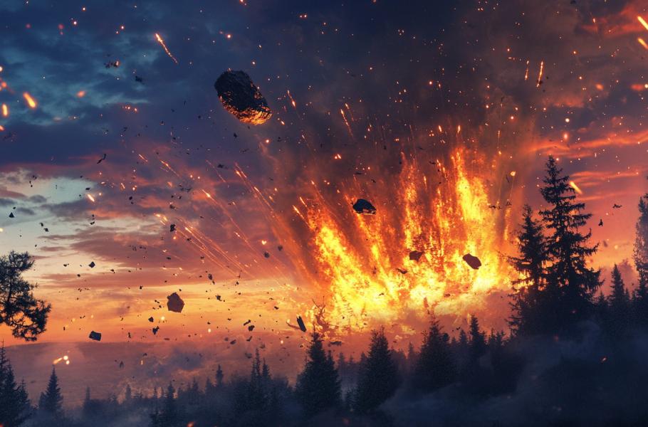 Podle odborníků by následky dopadu byly srovnatelné s Tunguzskou událostí z roku 1908. (ilustrace: Midjourney AI, PDM 1.0)