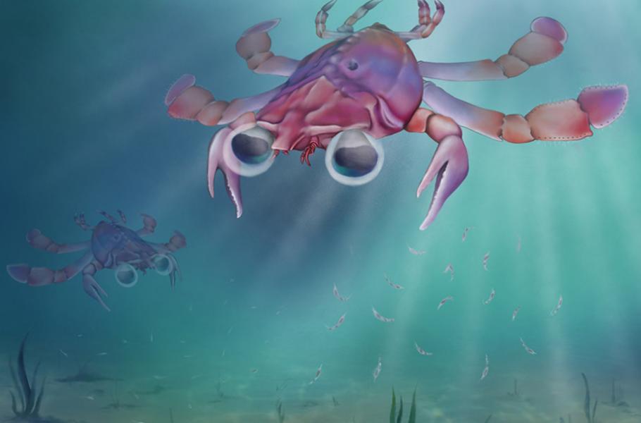 Před 95 miliony let žili v křídovém moři malí netradiční krabi s veslovitýma nohama. Vědci je kvůli jejich vzezření přirovnávají k ptakopyskům