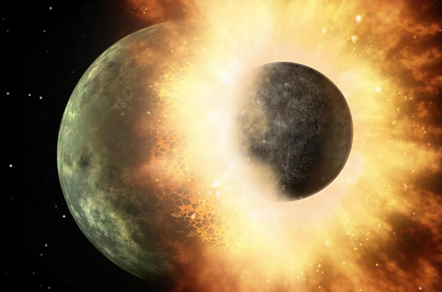 Podle současných převládajících teorií vznikl Měsíc z vyvrženého materiálu po katastrofální srážce předchůdce naší planety s protoplanetou zhruba velikosti dnešního Marsu, které se říká Theia. Výzkum meteoritů nedávno přinesl další důkazy, svědčící ve prospěch této teorie.
