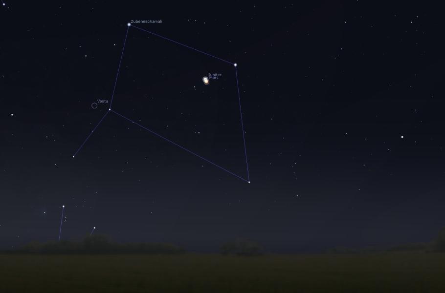 - 7. ledna – těsné setkání Jupitera a Marsu na ranním nebi nad jihem, tělesa bude dělit úhlová vzdálenost cca 0,3°