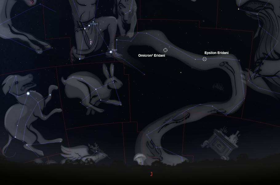 Souhvězdí řeky Eridan však ukrývá ještě jednu zajímavou blízkou hvězdu. Její jméno Keid pochází z arabštiny, ale astronomové ji znají také jako 40 Eridani nebo Omicron² Eridani. Dělí ji od nás zhruba 16 světelných roků a s jasností 4,4 mag je pod tmavou oblohou vidět i očima. Pokud však máte možnost použít dalekohled, neváhejte: Kde jinde zahlédnete pohromadě tři hvězdné trpaslíky? Keid totiž představuje mimořádný trojčlenný systém.