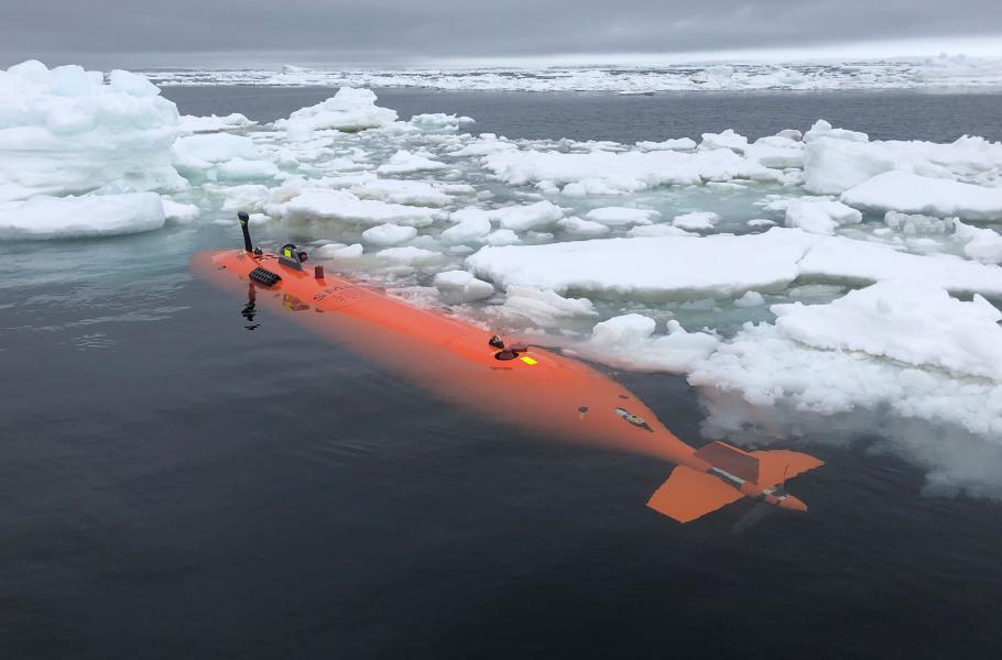 Podvodní robot Rán při mapování spodní části ledovce Thwaites. (foto: University of Gothenburg, Anna Wåhlin, CC0)