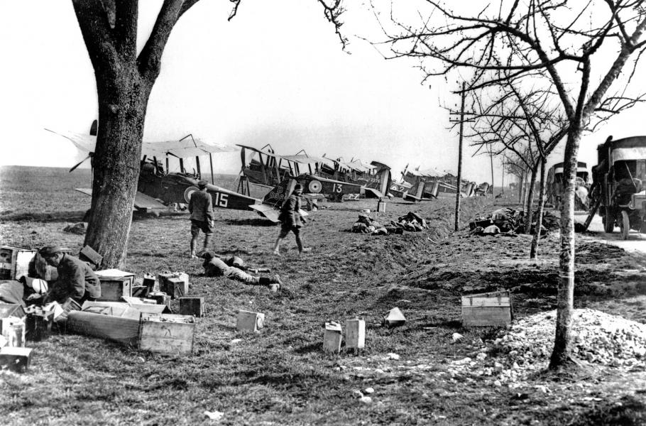Průzkumné letouny RFC připravené ke startu. Zájemci se hlásili do letectva například kvůli vyššímu platu či lepším životním podmínkám oproti službě v zákopech. (foto: Getty Images)