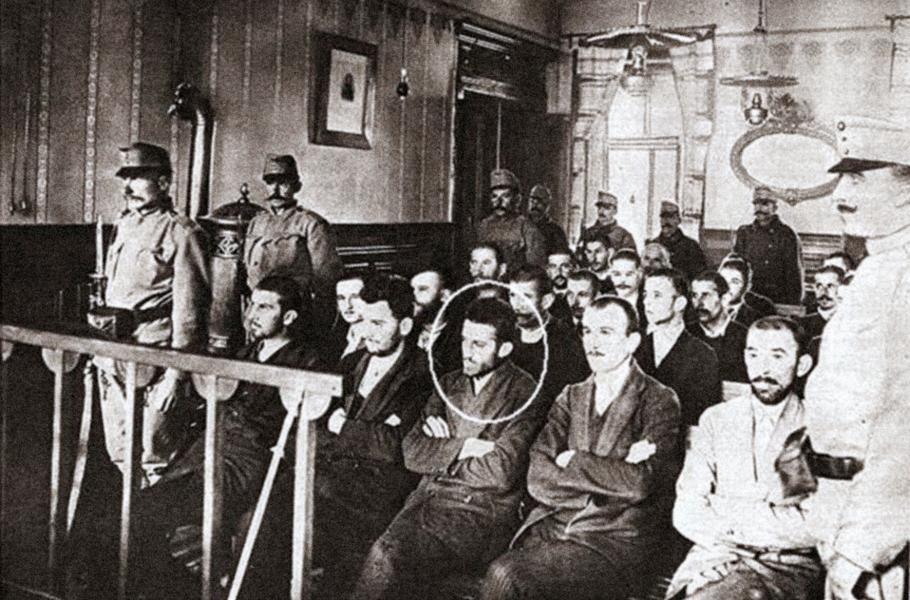Pátrání po pachatelích sarajevského atentátu bylo úspěšné. Do rukou policie padli téměř všichni jeho účastníci i jejich pomocníci. Zatčení byli umístěni do samovazby v sarajevské věznici a jejich vyšetřování skončilo 19. září 1914. Obžaloba je vinila především z vlastizrady a spiknutí, do něhož se zapojila cizí země – Srbsko.