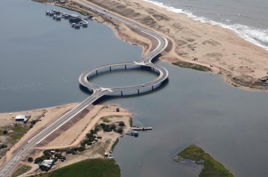 Je otevřený jen několik týdnů, přesto se okamžitě stal obdivovanou i vysmívanou atrakcí - unikátní „kruhový“ most vinoucí se přes lagunu Garzon na jižním pobřeží Uruguaye dráždí, baví a provokuje