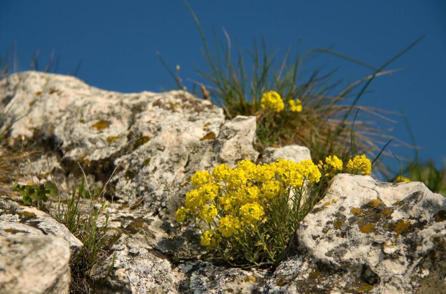 Díky různorodému podkladu se v těchto místech vyvinulo i pestré druhové složení, které je závislé především na hloubce půdy. Do mozaiky rostlinných ekosystémů patří i společenstva skalních stepí, rostoucí na prudkých svazích. Rostliny v rozpukané skalní stěně využívají každou škvírku podobně jako trávy hlubších půd na rovnějších částech. Mezi tyto pionýrské druhy, osidlující nehostinná skalní stanoviště, patří například kostřava sivá, tařice skalní a tařice horská, hvězdnice zlatovlásek, pěchava vápnomilná nebo místní endemický poddruh hvozdík Lumnitzerův pálavský, jenž se vyznačuje množstvím fialových květů a omamnou vůní.