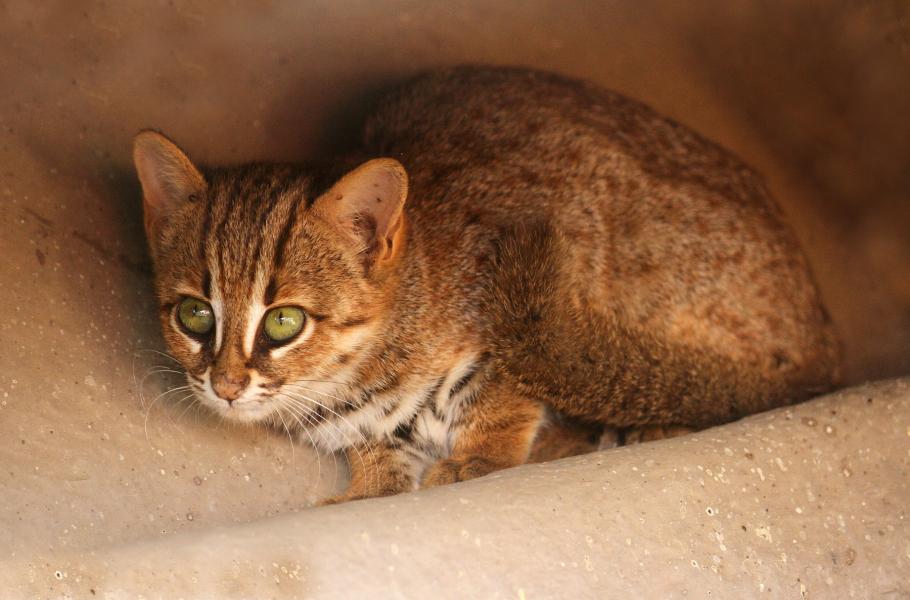 Kočka cejlonská (na snímku) patří mezi nejmenší kočičí druhy. Nově popsaná Prionailurus kurteni byla podle vědců podobně velká. (foto: Wikimedia Commons, Davidvraju, CC BY-SA 4.0)