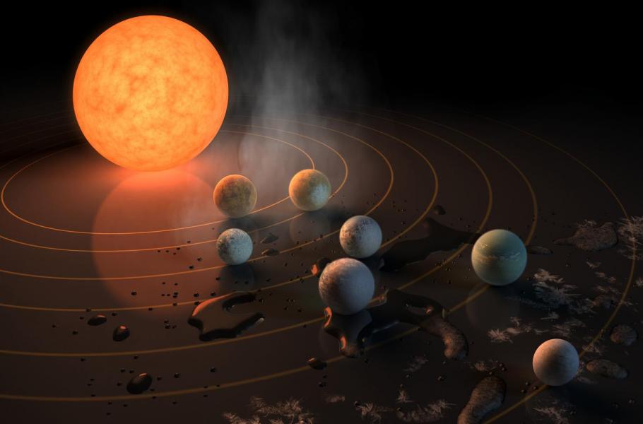 Model blízkého planetárního systému TRAPPIST-1. (foto: NASA, R. Hurt, T. Pyle, CC BY-SA 4.0)