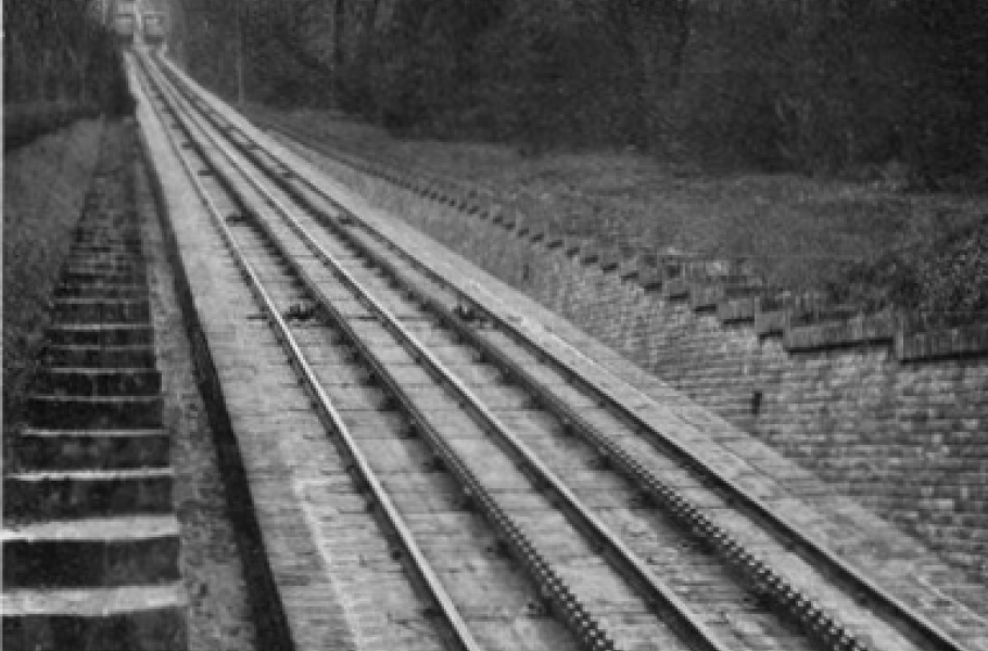 Zároveň se stavbou rozhledny začaly i stavební práce na lanové dráze. První cestující svezla už 25. července. Trať tehdy měřila 396,5 metrů (dnes je to 510 metrů) a jezdily na ní dva vozy poháněné vodou. Vždy vyrážely na trať proti sobě – jeden z horní, druhý z dolní stanice. Do nádrže horního vozu se načerpalo tolik vody, aby byl těžší než vůz dole. Když začal sestupovat, vytáhl svou vahou spodní vůz nahoru. V dolní stanici se voda vypustila do kanálu. Bohužel systém nefungoval ve velkých mrazech, kdy voda zamrzala, a při vysokých vedrech, kdy zase vysychala. To pak turisté museli nahoru po svých. Vodu později nahradila elektrika.