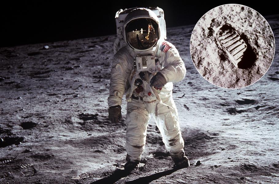 Otisk prvního Armstrongova kroku na Měsíci se skeptikům zdál příliš jasný a ostrý. V pozemských podmínkách totiž nedokáže písek (bez vlhkosti, která by jej spojila) držet tvar. Zrna písku jsou kvůli pozemské atmosféře obroušená a snadno po sobě kloužou. Částice lunárního prachu mají však mnohem ostřejší hrany, které se k sobě pevně přimykají. Tým Mythbusters otestoval vytváření stop ve vakuu s pomocí umělé imitace tohoto prachu, který NASA používá ve výcvikových misích. Výsledek? Ostrá, dobře viditelná stopa.