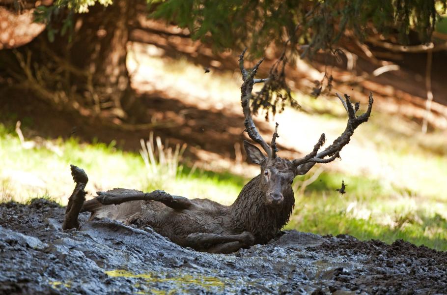 Jelen v době říje nemá čas na potravu a stará se jen o své laně a odhánění případných soků. Když se statný paroháč postaví do krásné pózy, tak zpoza mraku – ten den poprvé a naposledy – vykoukne slunce a zalije zvěř krásným oranžovým světlem. Po třech minutách je po osvětlení a já díky právě prožitému fotografickému blahu zapomínám na to, že z tak dlouhého čekání už vůbec necítím přesezené nohy.
