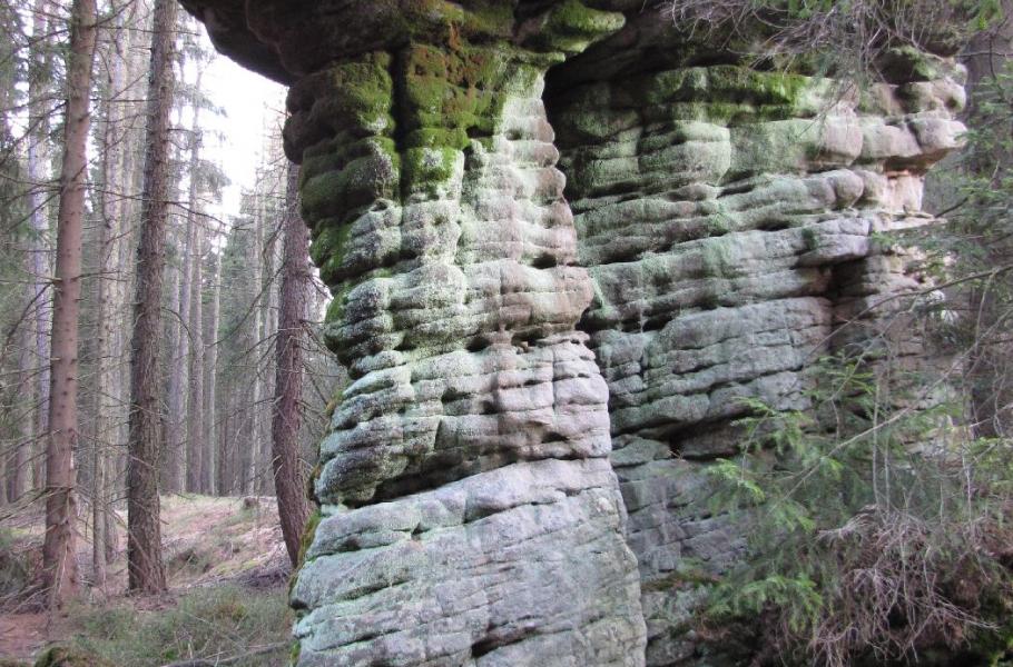 Unikátní komplex bíle zbarvených skal, mezi nimiž najdete věže a stěny vysoké až třicet metrů. Z Karlova vás k nim zavede jižně směřující žlutá značka. Po projití skalního města můžete po žluté pokračovat a dojít k rašeliništi. Na vzácné rostliny bohatá přírodní rezervace o rozloze 40 ha je sice veřejnosti nepřístupná, ale stezka vede přímo po její hranici.