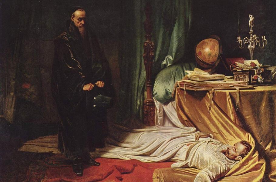 Astrolog Seni nad mrtvolou Albrechta z Valdštejna. (ilustrace: Wikimedia Commons, Karl von Piloty, CC0)