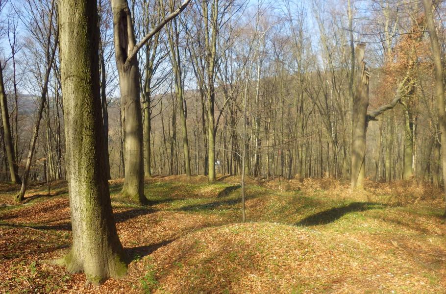 Když jsme kolem sebe spatřili pravidelné terénní vlny, rozbušilo se mi srdce. Ocitli jsme se v lokalitě zvané V jámách. Habrová doubrava skrývá botanický klenot i nesmazatelné stopy po prastaré povrchové těžbě pikovického zlata. V lese jsou patrné kruhové propadliny a někde i kopečky vytěžené hlušiny, které zvolna zahlazuje sama příroda.
