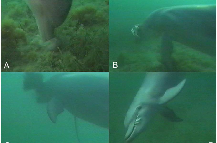 K takovým naučeným delfíním činnostem patří úprava sépií vějířovitých (Sepia apama) na chutné sousto. Tento kousek byl pozorován v podání delfínů druhu Tursiops aduncus, kteří žijí při jihoaustralském pobřeží. Delfín sépii nejprve přišpendlí nosem ke dnu a tlakem ji zabije. Následně mrtvého hlavonožce zvedne ze dna, pomačká úlovek v tlamě a následně jej důkladně vymáchá od inkoustovité tekutiny. Někteří delfíni ještě drhnou hřbetní stranou sépie o písečné dno, aby jim sedřeli kůži a uvolnili vápenatou „kost“. Teprve pak si na úlovku pochutnají. Mladí delfíni se celému postupu učí od matky.
