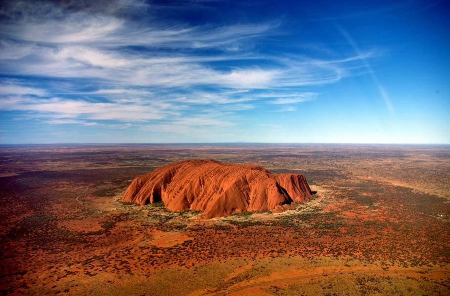 V samém srdci Austrálie vyrůstá uprostřed vyprahlé pouště jakoby z ničeho snad nejznámější přírodní památka kontinentu – mohutná skála Uluru. Pískovcový monolit, největší svého druhu na světě, se táhne v délce 348 m a částečně se „zavrtává“ do země, místy až do hloubky 5 km. Proslul nádhernými barvami, jež se podle slunečního svitu mění od oranžové až po rudou, ale i množstvím legend a konspiračních teorií. Podle některých z nich například výstup na skálu přináší smůlu, v jejím okolí záhadně mizí turisté a duchové předků prý potrestají kohokoliv, kdo by si chtěl snad jen kousíček posvátného pískovce odnést.