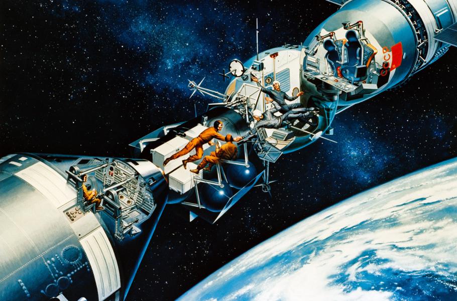 V červenci 1975 se uskutečnila první mezinárodní vesmírná mise: Na zemské orbitě se spojilo americké Apollo se sovětským Sojuzem. Projekt přitom probíhal v době, kdy ještě obě země nenavazovaly vzájemné vztahy právě snadno