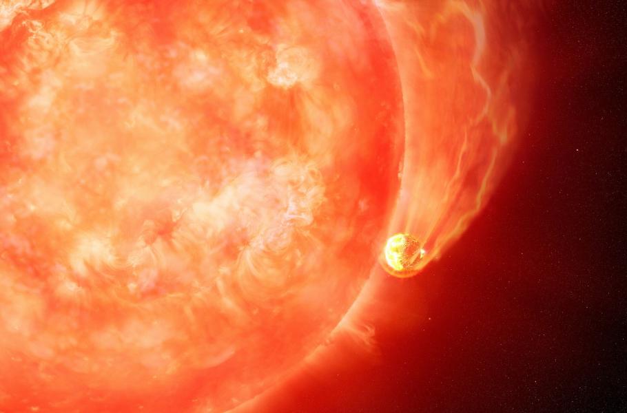 Nejméně 8 % studovaných planet pozřelo svou planetu. Zjištěná čísla vědci považují za spodní hranici a předpokládají, že podobné chování může být ve skutečnosti mnohem častější. (ilustrace: Wikimedia Commons, NOIRLab, M. Garlick/M. Zamani, CC BY 4.0)