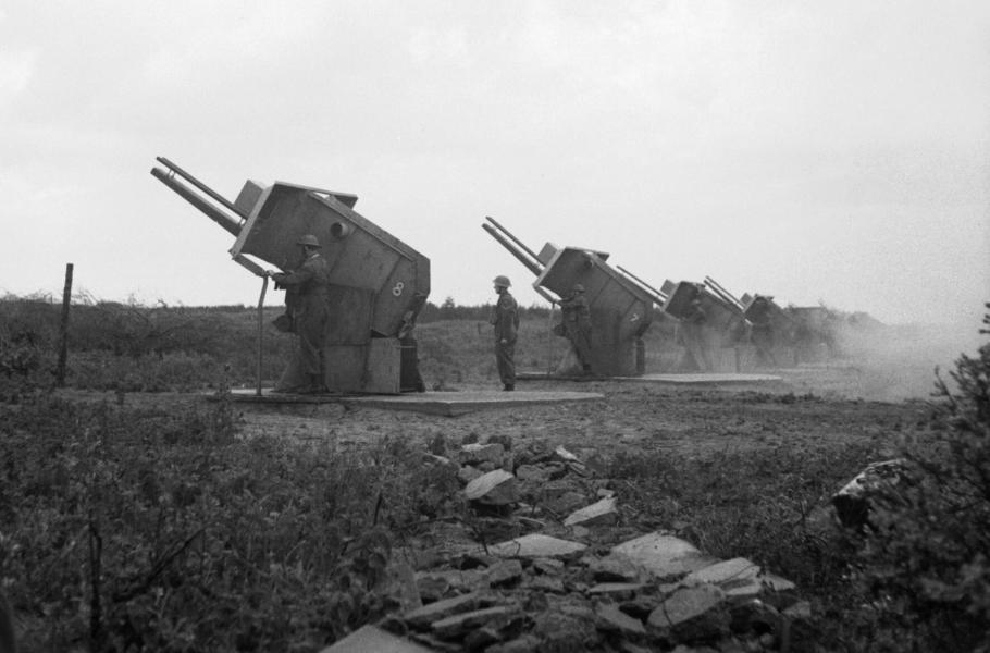 Britská domobrana obsluhuje takzvanou baterii Z na britském pobřeží, léto 1942. (foto: Wikimedia Commons, Imperial War Museums, IWM Non Commercial Licence)
